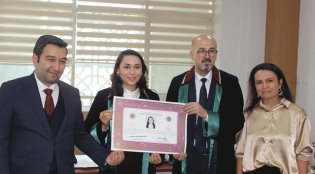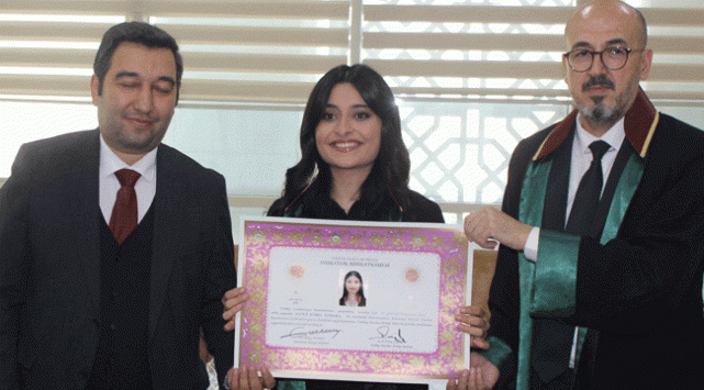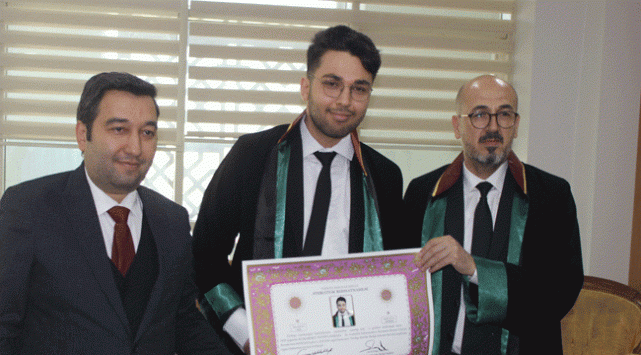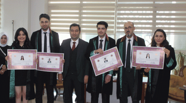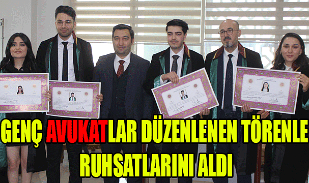 Avukatlık stajını bitirerek ruhsat almaya hak kazanan genç avukatlar Fatma İlhan, Burak Mert, Muhammet Tayyip Cambaz ve Hatice Kübra Toprak düzenlenen törenle yemin ederek ruhsatlarını aldı.