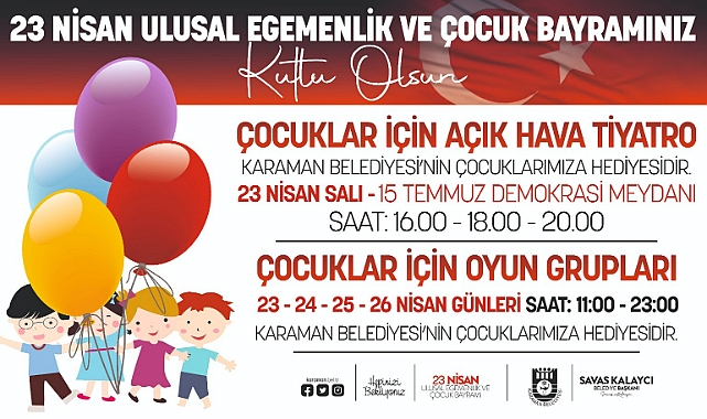 Karaman Belediye Başkanı Savaş Kalaycı da, yaptığı açıklamayla 23-26 Nisan tarihleri arasında Aktekke 15 Temmuz Demokrasi Meydanı’nda gerçekleştirilecek Çocuk Şenliğine tüm çocukları ve aileleri davet etti.