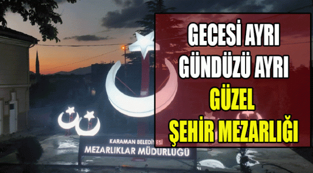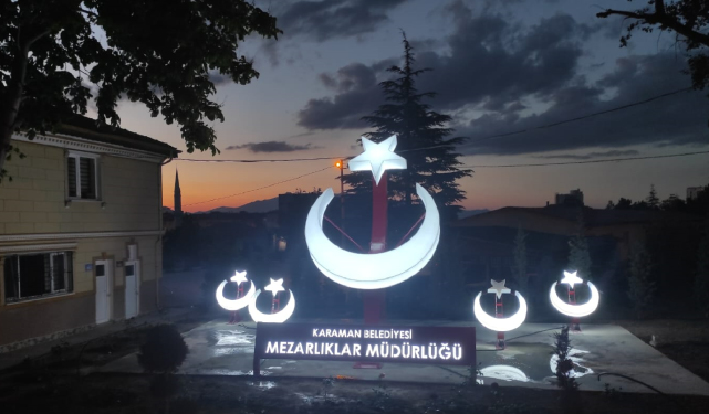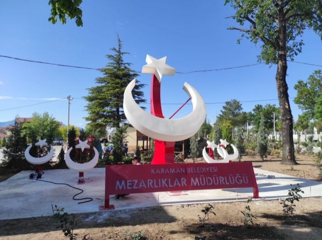 Karaman’ı daha modern, estetik ve görsel hale getirmek için çalışmalarını sürdüren Karaman Belediyesi,kent merkezindeki park ve kavşaklar ile şehir girişlerine ilimizin simgelerini yansıtan anıtlar yerleştiriyor.Karaman Belediyesi Mezarlıklar Müdürlüğü tarafından gül bahçesine dönen şehir mezarlığına ay–yıldızlı figür konuldu. Gecesi başka gündüzü başka olan şehir mezarlığına ziyarete gelen vatandaşlar büyük ilği gösteriyor.