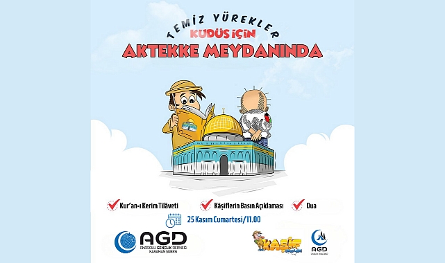 Ortaokul öğrencilerinden oluşan AGD Kâşif Grupları ile AGD İzcilik Kulübü, Aktekke Meydanında bir araya gelecek. 25 Kasım Cumartesi günü saat 11.00’de gerçekleştirilecek olan etkinlikte Gazze’de haftalardır yaşanmakta olan ve soykırıma varan İsrail katliamlarına dikkat çekilecek. Tamamen öğrenciler tarafından gerçekleştirilecek olan etkinlikte ilk olarak Filistin ve tüm mazlum coğrafyalardaki şehitler için Kur’an-ı Kerim okunacak ve ardından basın açıklaması yapılacak. Program dua ile son bulacak.