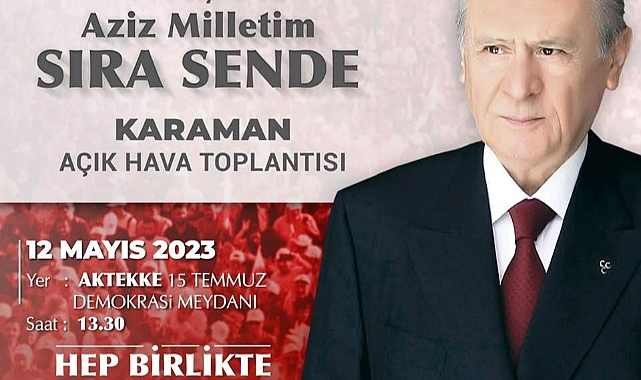 Ünüvar’dan tüm Karamanlılara davet Milliyetçi Hareket Partisi Karaman milletvekili adayı Mahmut Ünüvar, yayımladığı mesaj ile MHP Genel Başkanı Devlet Bahçeli’nin Karaman’da gerçekleştireceği mitinge Karamanlıları davet etti. MHP Lideri Bahçeli’yi Karaman’da ağırlayacak olmaktan dolayı gururlu olduklarını belirten Ünüvar, ‘’Genel Başkanımız Devlet Bahçeli Bey, ‘Aziz Milletim Sıra Sende’ temalı açık hava toplantıları kapsamında 12 Mayıs Cuma Günü Karaman’da hemşehrilerimizle bir araya gelecek. Tüm Karamanlıları bu tarihi günde bizimle birlikte olmaya davet ediyorum’’ dedi. Hazırlıkların devam ettiğini ifade eden Ünüvar konuyla ilgili mesajında şu sözlere yer verdi; ‘’Partimizin 2021 yılında Afyonkarahisar’da başlatıp 6 Şubat'ta meydana gelen Kahramanmaraş merkezli depremler sonrasında ara verdiği açık hava toplantıları ‘Aziz Milletim Sıra Sende’ temasıyla yeniden başlamıştı. Bu kapsamda 24 Nisan 2023’te Kastamonu’da tekrar başlayan açık hava toplantıları programına ilimizin de dâhil edilmesi hepimizi gururlandırdı. Saat 13.30’da başlaması planlanan açık hava toplantısı dolayısıyla tüm hemşehrilerimizle aynı heyecan ve coşkuyu paylaşacağız. Aktekke meydanından yükselecek olan ses; dosta güven, düşmana korku verecek. Sayılı günlerin kaldığı 28’inci Dönem Milletvekilliği Genel Seçimlerinin; devletimiz ve milletimiz açısından birliğe ve dirliğe, Karaman ve Karamanlılar açısından huzur ve refaha kalıcı neticeler getirmesini temenni ediyorum. Beyleri, yöneticileri ve yetiştirdiği ilim adamlarıyla Karaman, tarihin akışını değiştiren bir maziye sahiptir. Bu mazi, tarihe, geleceğe ve hedeflere istikamet vermiş bir mazidir. Cumhuriyet’in 2. Yüzyılına giriş kapısının aralandığı bu seçimlerde Karaman, inanıyorum ki tıpkı mazisinde olduğu gibi yeni bir geleceğin meşalesini yakacaktır. Bu vesileyle aynı hedeflere odaklanmış ve aynı istikamet üzere olduğumuz, gönülleri memleket sevdasıyla çarpan tüm hemşehrilerimi 12 Mayıs Cuma Günü saat 13.30’da Aktekke Kent Meydanına davet ediyorum. Gelin, lider ülke Türkiye meşalesini birlikte yakalım. Gelin, bu meşaleden çıkan ışıkla yürüyüşümüz hızlansın’’